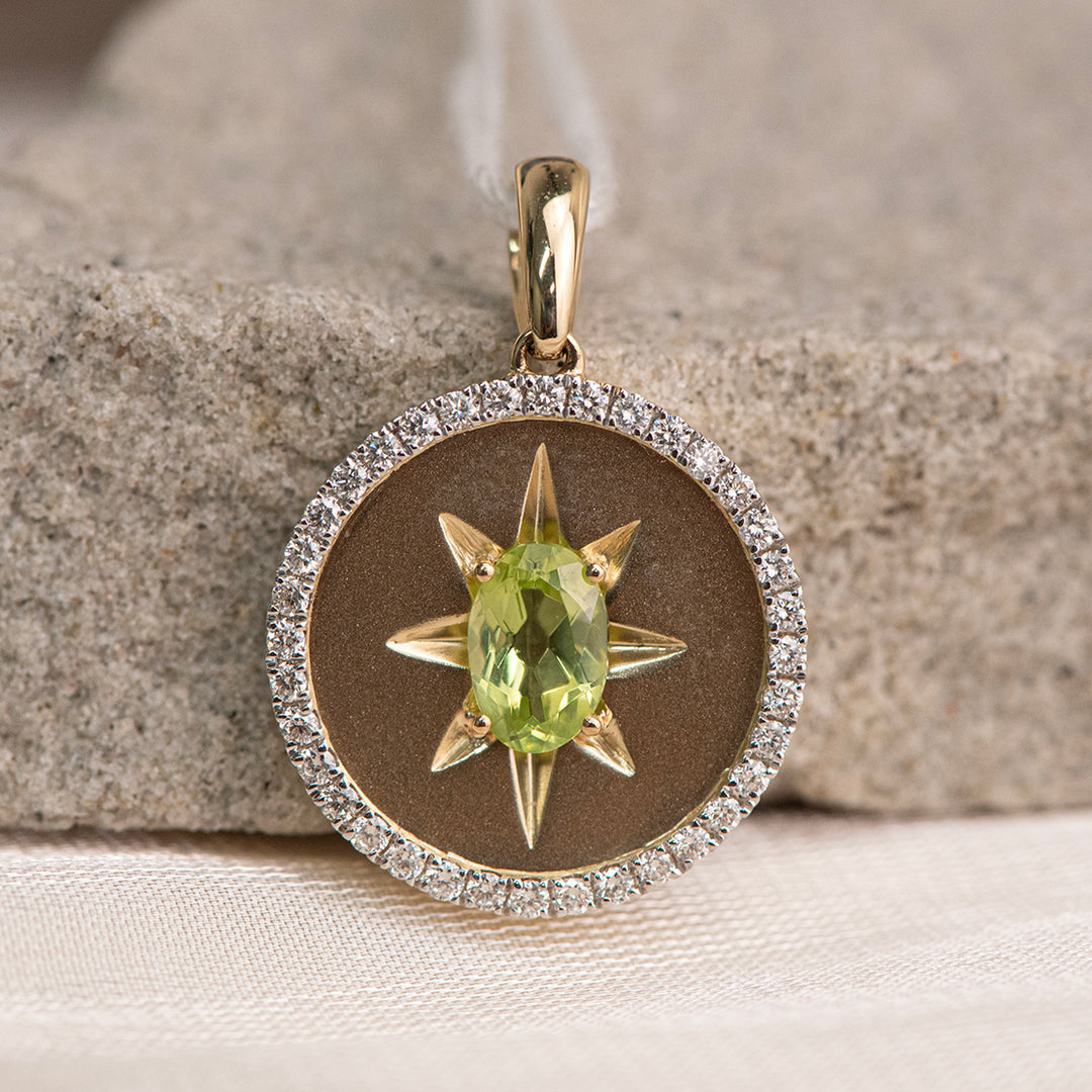14K Yellow Gold Celestial Peridot & Diamond Pendant