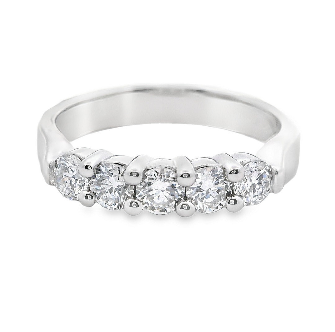 14K White Gold 5 Diamond Shared Prong Band (Size 7)