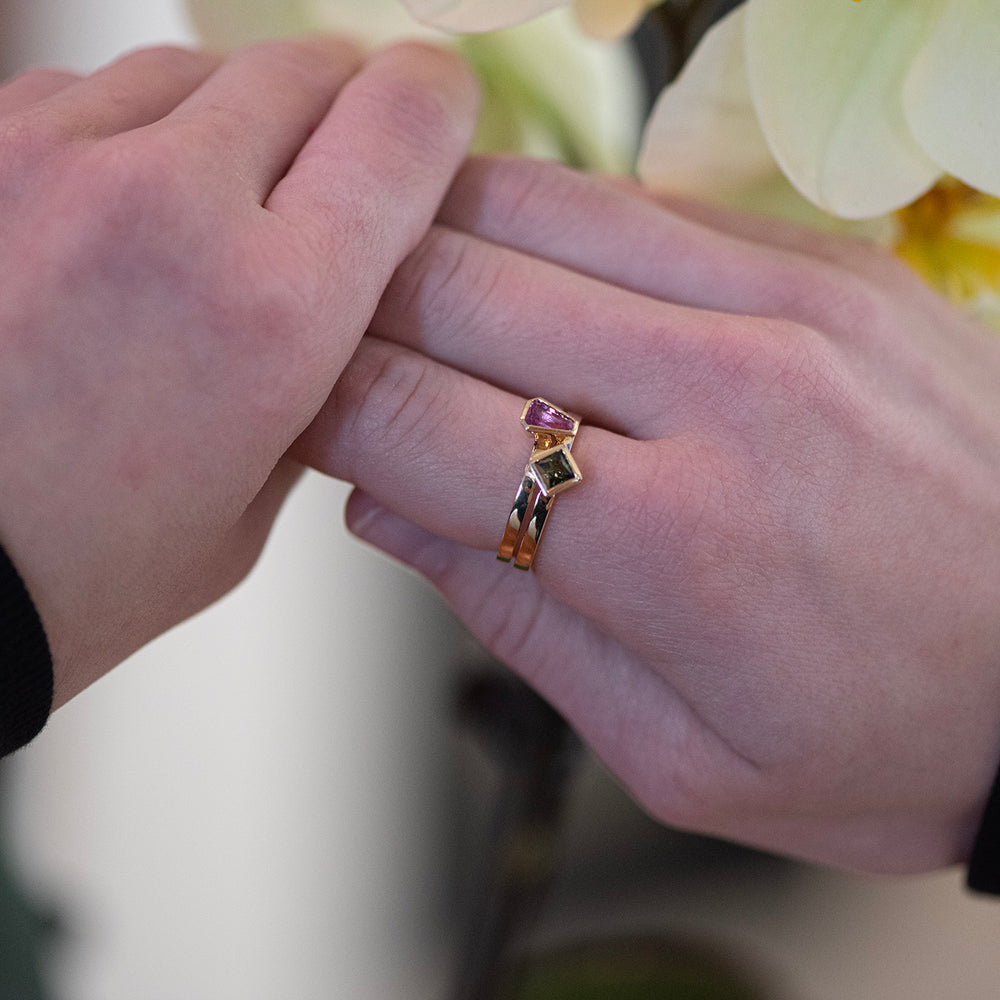 Mix and match stackable rings in both 14k yellow and white gold. Combine various shapes of colored gemstones for a unique look every time.