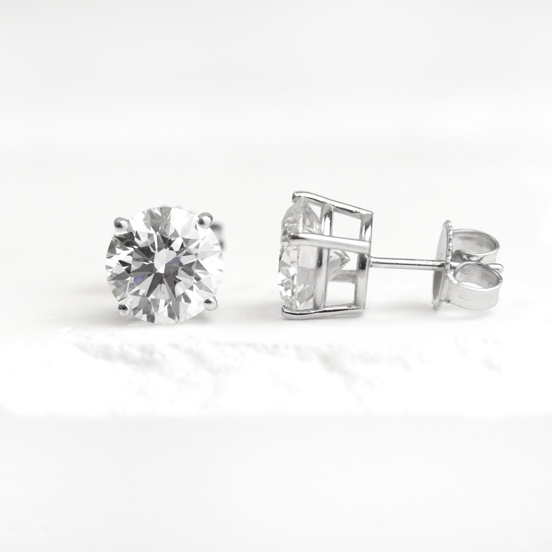14KW 4.10ct 4- Prong LAB Diamond Stud Earrings (E VS2 IGI)