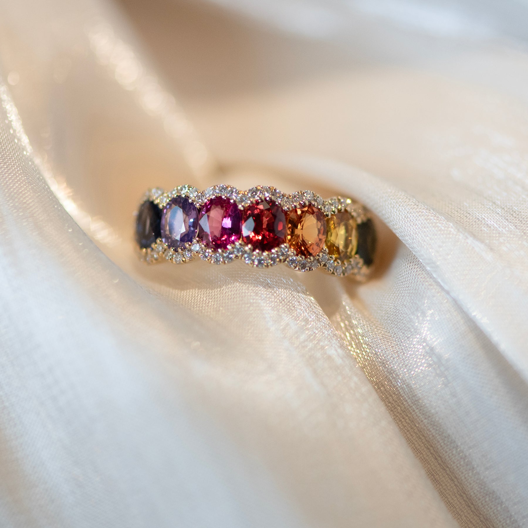 14KY Multi Color Sapp 2.12ctw, Dia .21ctw Halo Ring