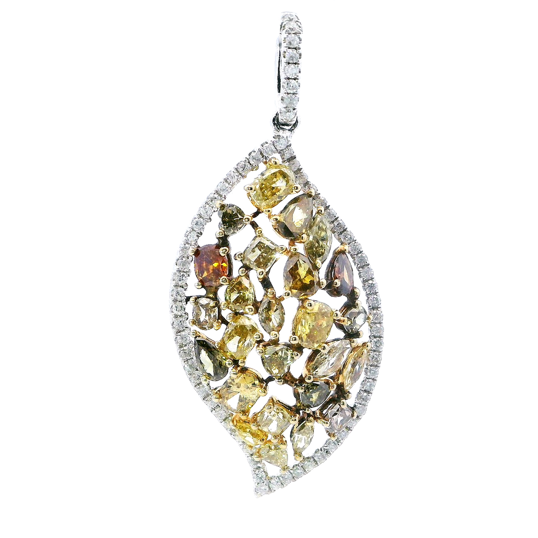 Fancy Color Multi Shape Cluster Freeform Diamond Pendant In White Gold