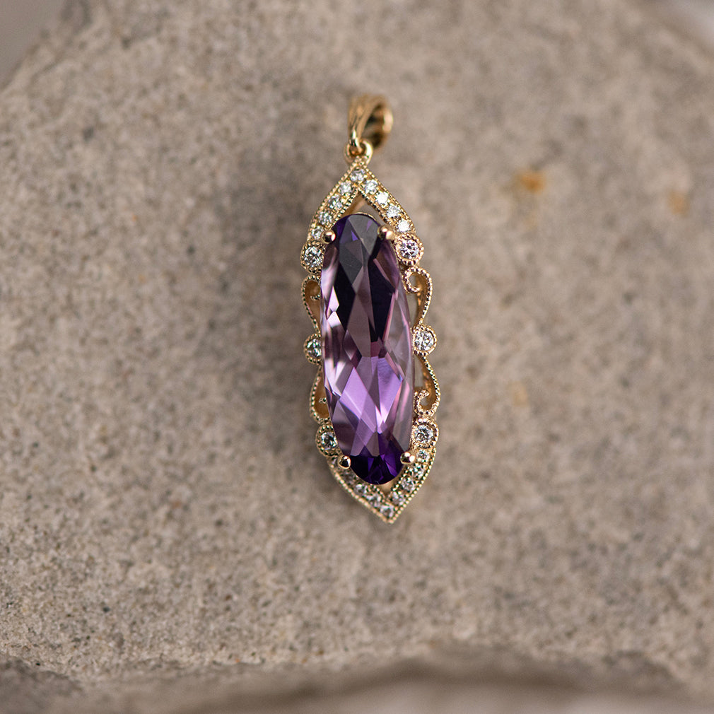 14K Yellow Gold Amethyst and Diamond Filigree Pendant
