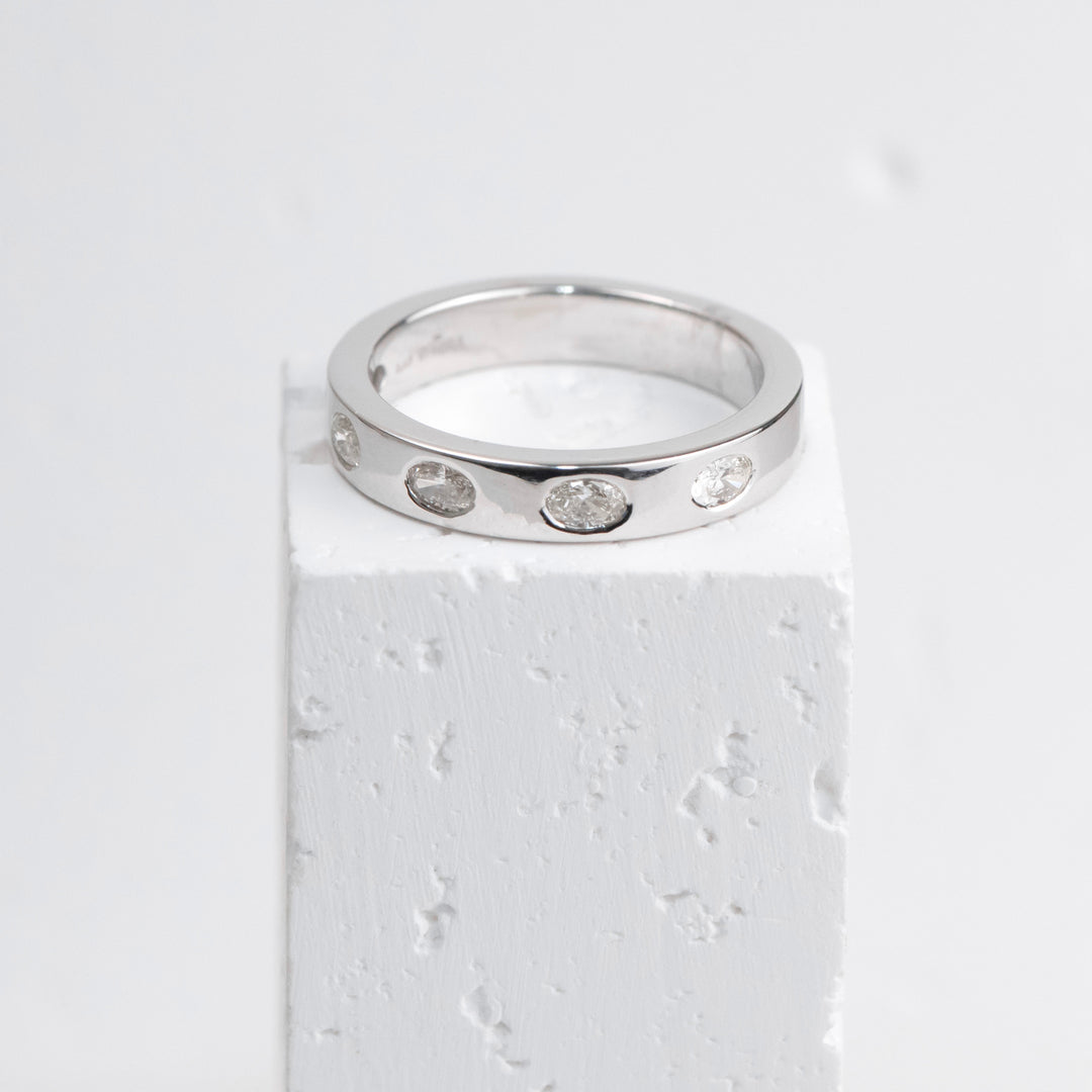 14K White Gold Oval Diamond Flush Set Band