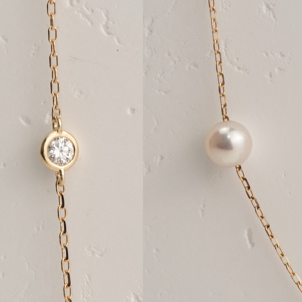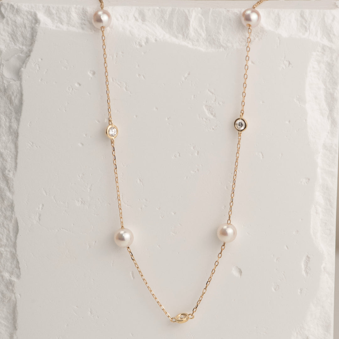 14K Yellow Gold Akoya Pearl and Lab Diamond Station Necklace
