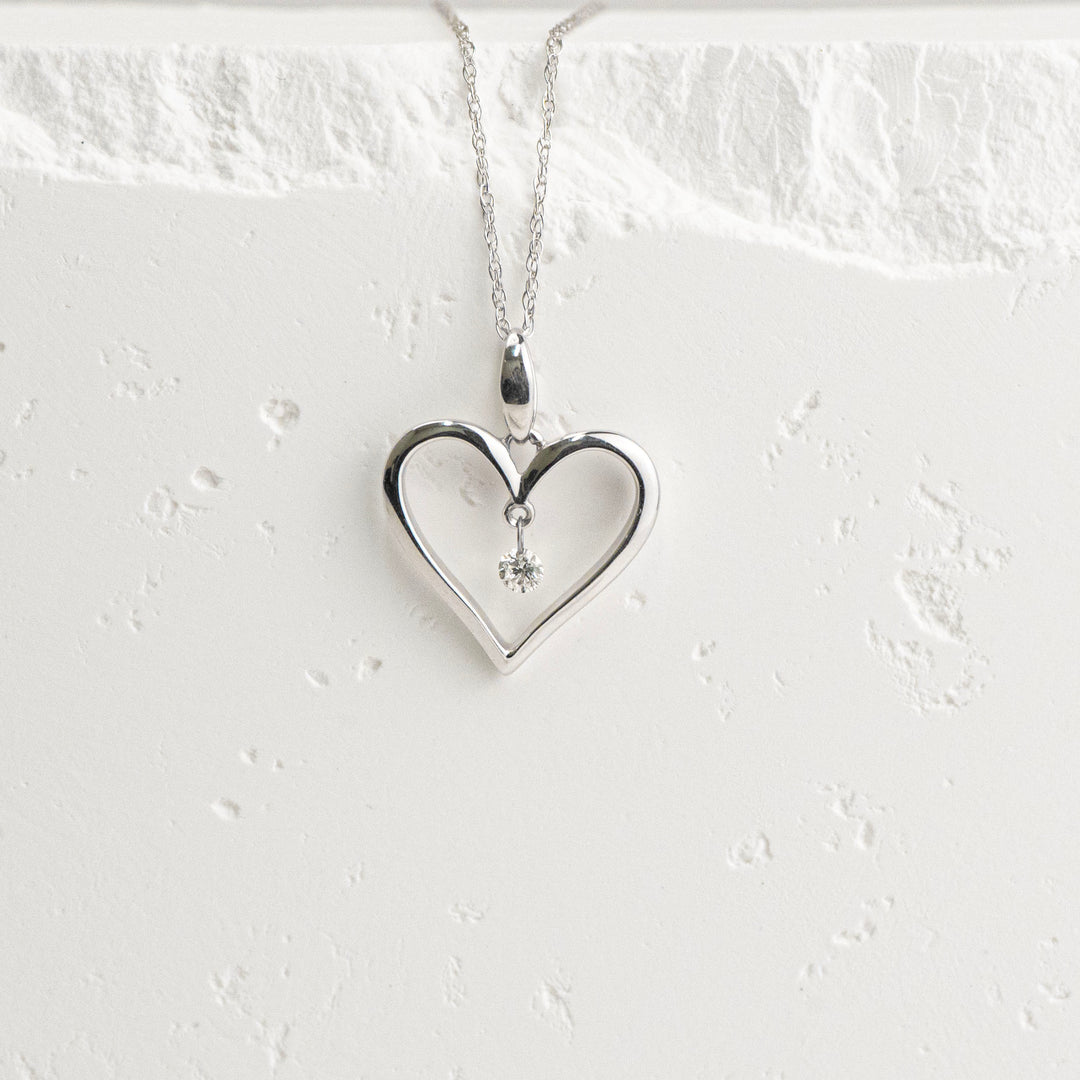14K White Gold Shimmering Diamond Open Heart Necklace