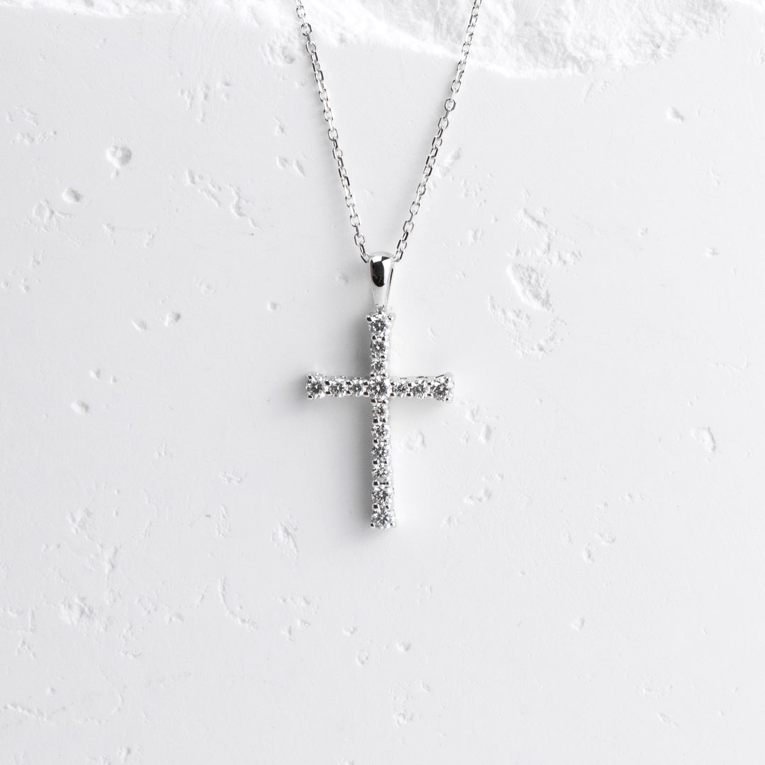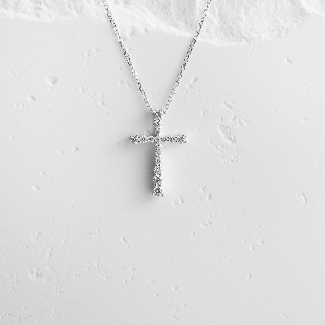 14K White Gold Tapered Diamond Cross Necklace