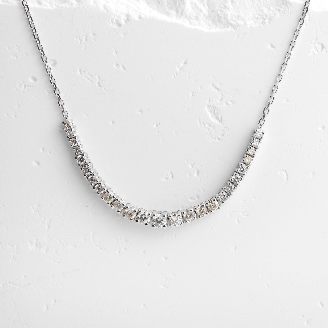 14K White Gold Curved Diamond Station Necklace
