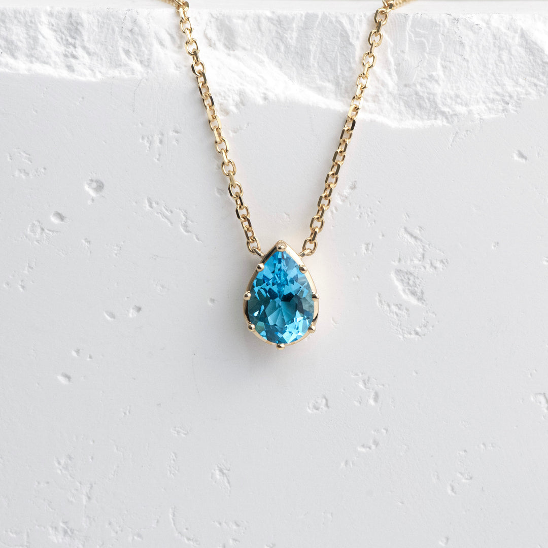 14K Yellow Gold Blue Topaz Pear Station Necklace