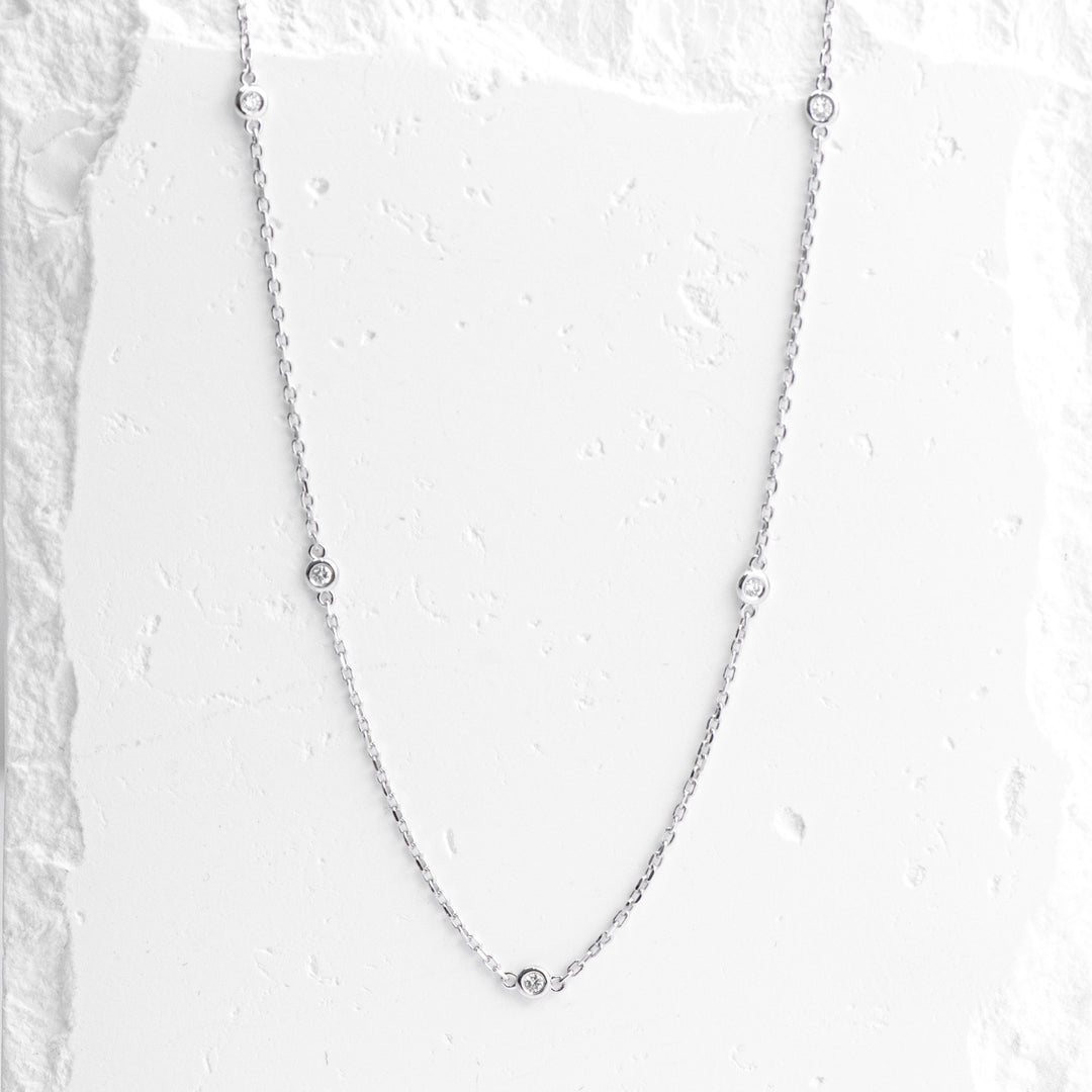 14K White Gold Diamond Bezel Station Necklace