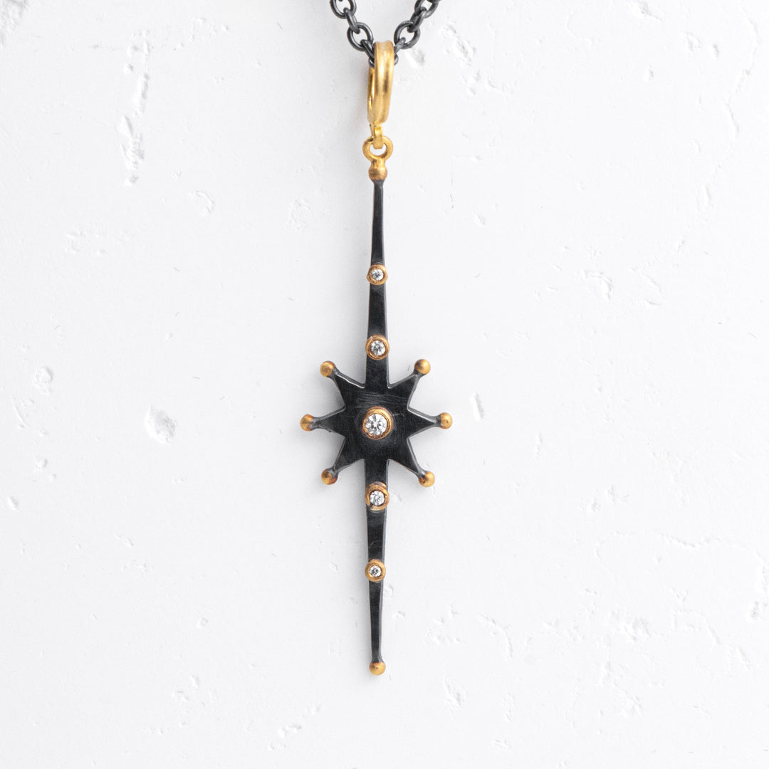 Oxidized Silver and 24K Yellow Gold Diamond "STARBURST" Necklace