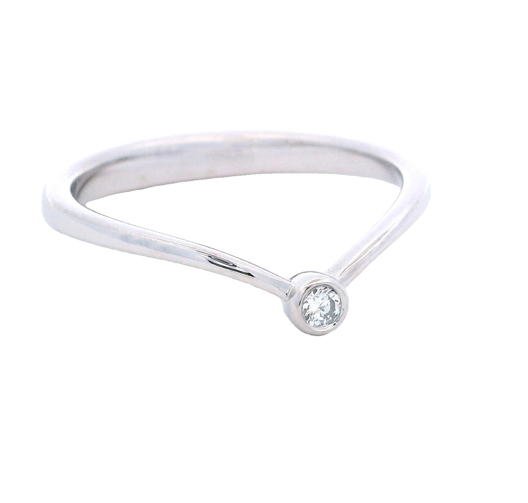 14K White Gold Round Diamond Chevron Ring