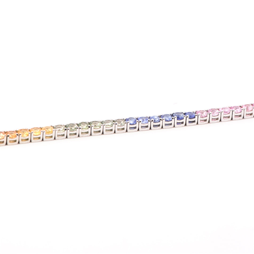 Multi-Color Sapphire Line Bracelet In White Gold