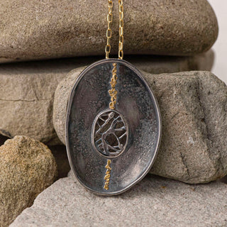 Argentium Silver & 18KY Gold Oval w/Placer Gold Pendant
