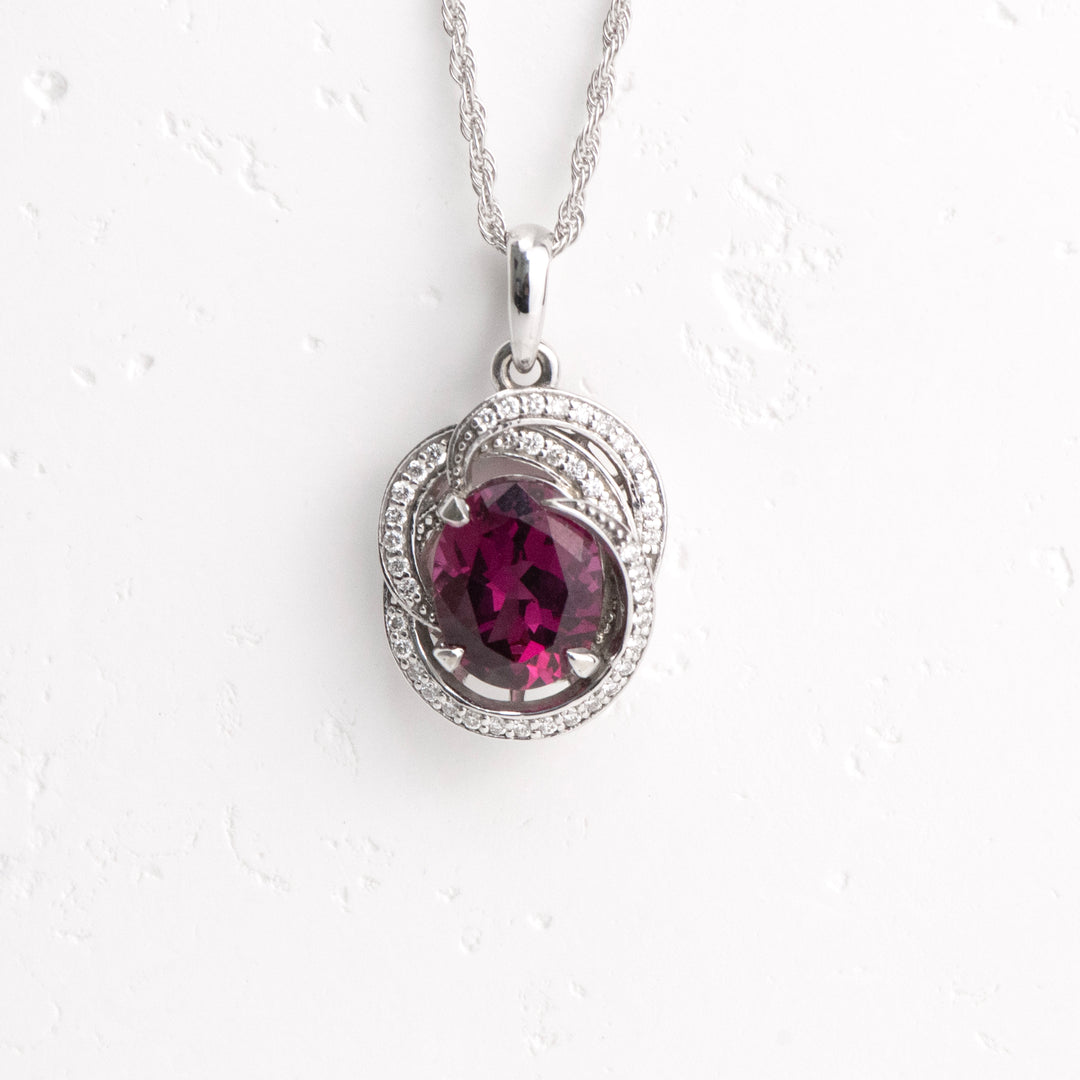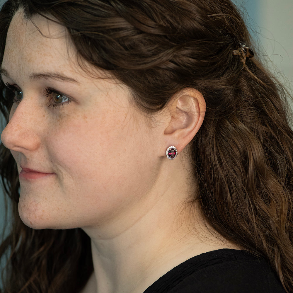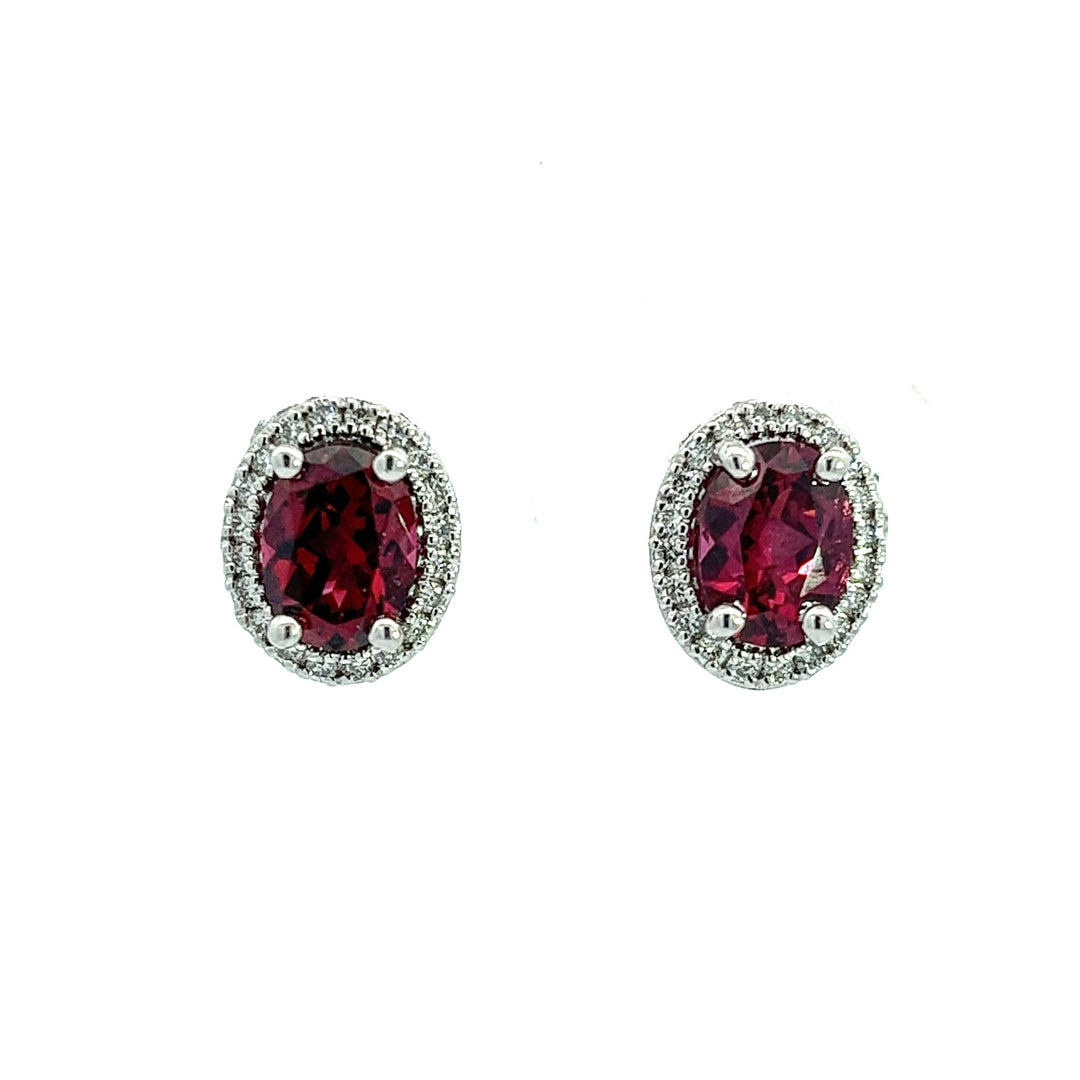 Rhodolite Garnet And Diamond Halo Stud Earrings In White Gold