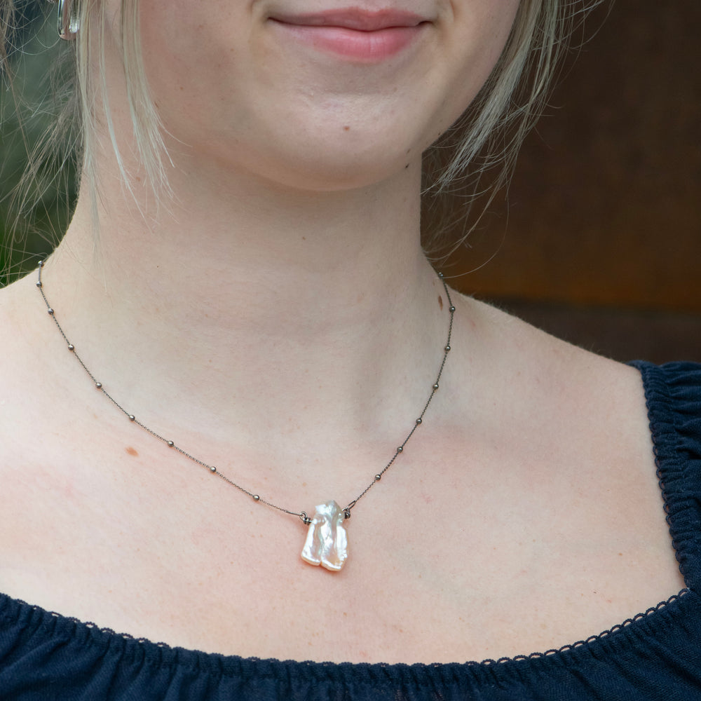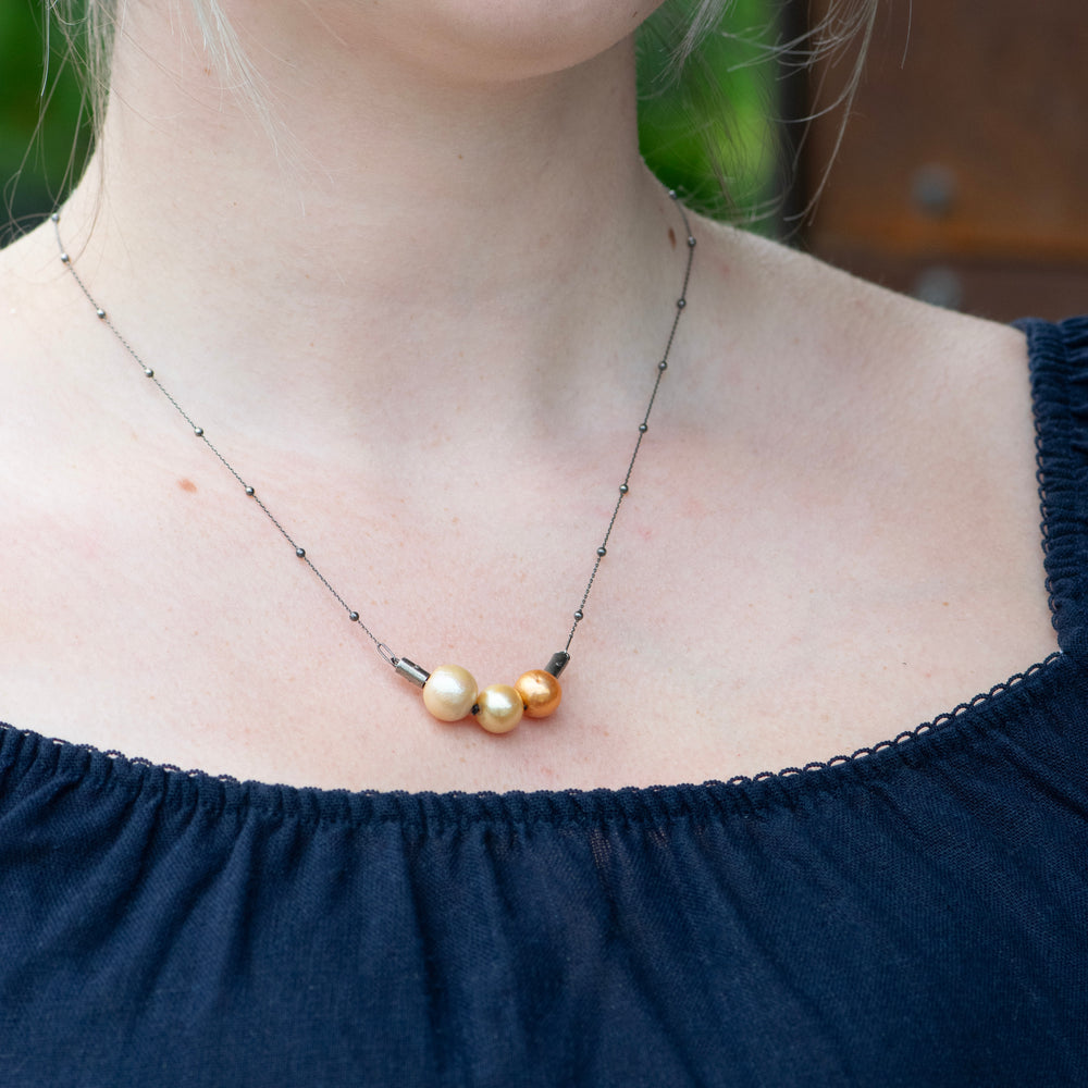 Sterling Silver 3 Pearl Necklace on Bead Chain