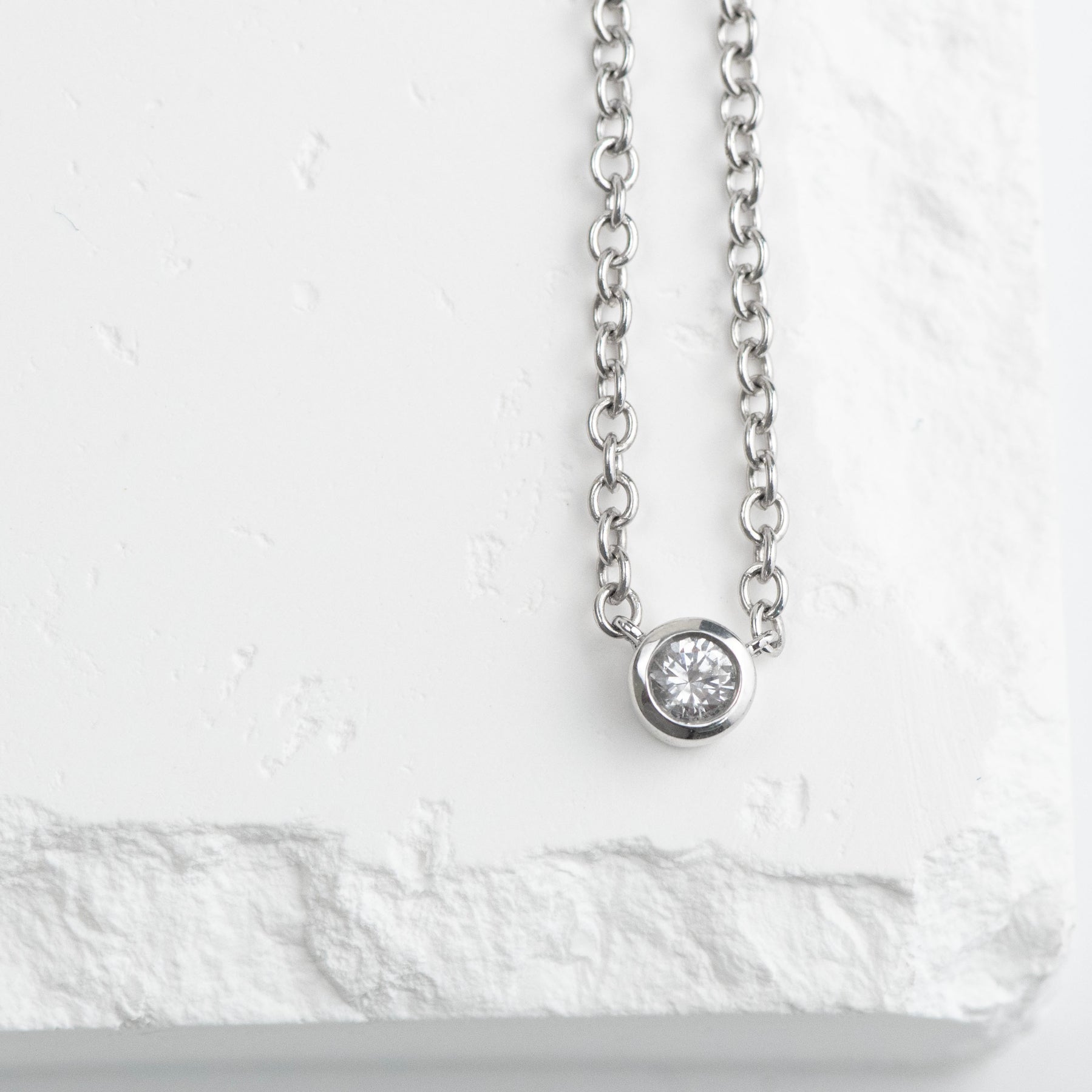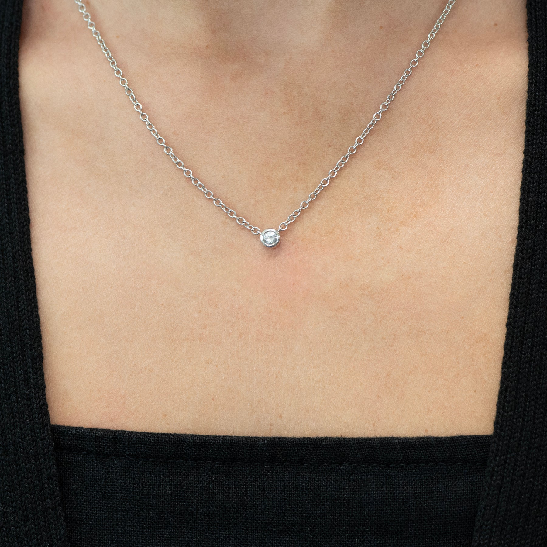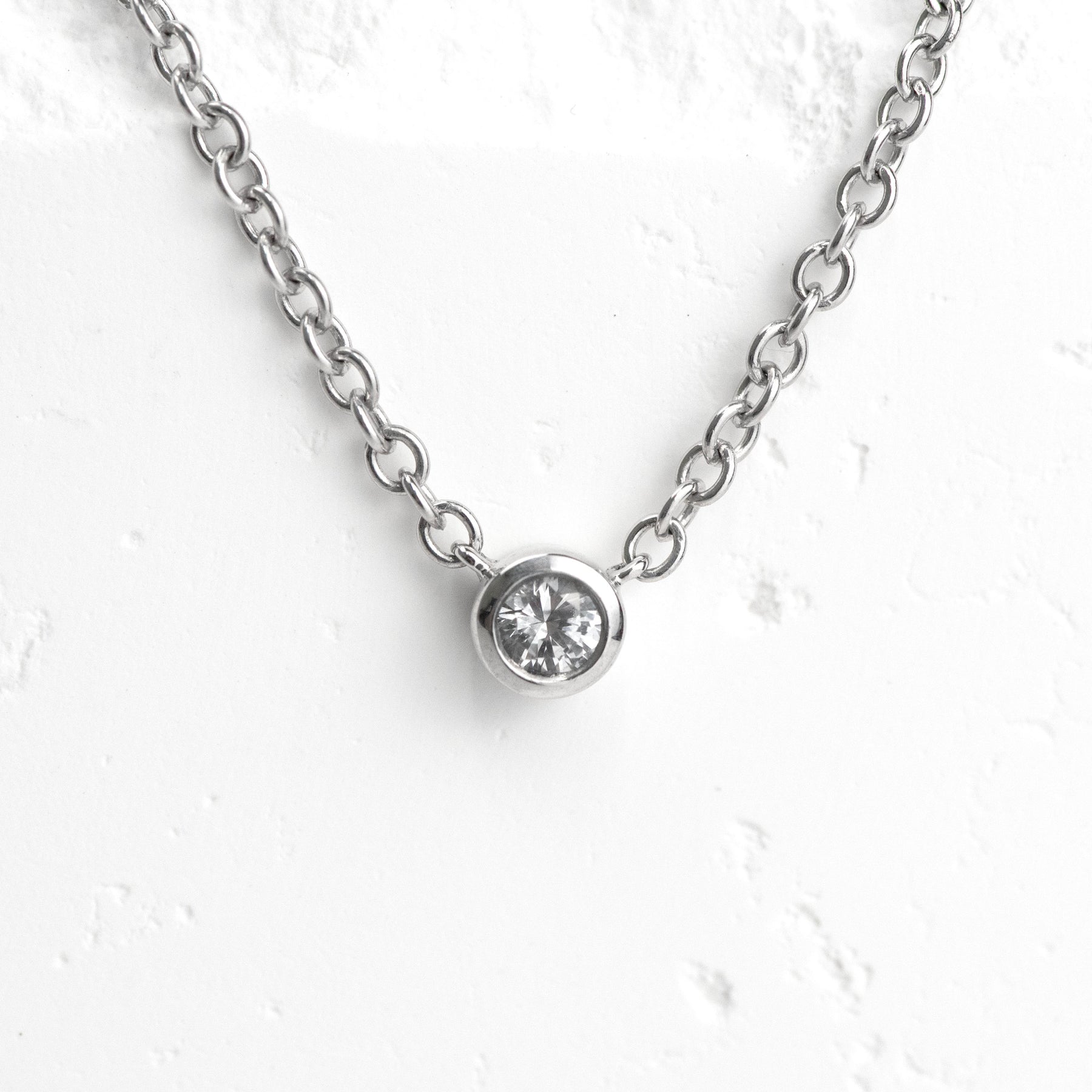 A single round lab-created white sapphire is bezel-set in polished sterling silver. With the same brilliance and durability as natural sapphire, this gem offers a bright, clear sparkle in a clean, minimal design. The open cable chain keeps the look versatile for both casual and formal wear.