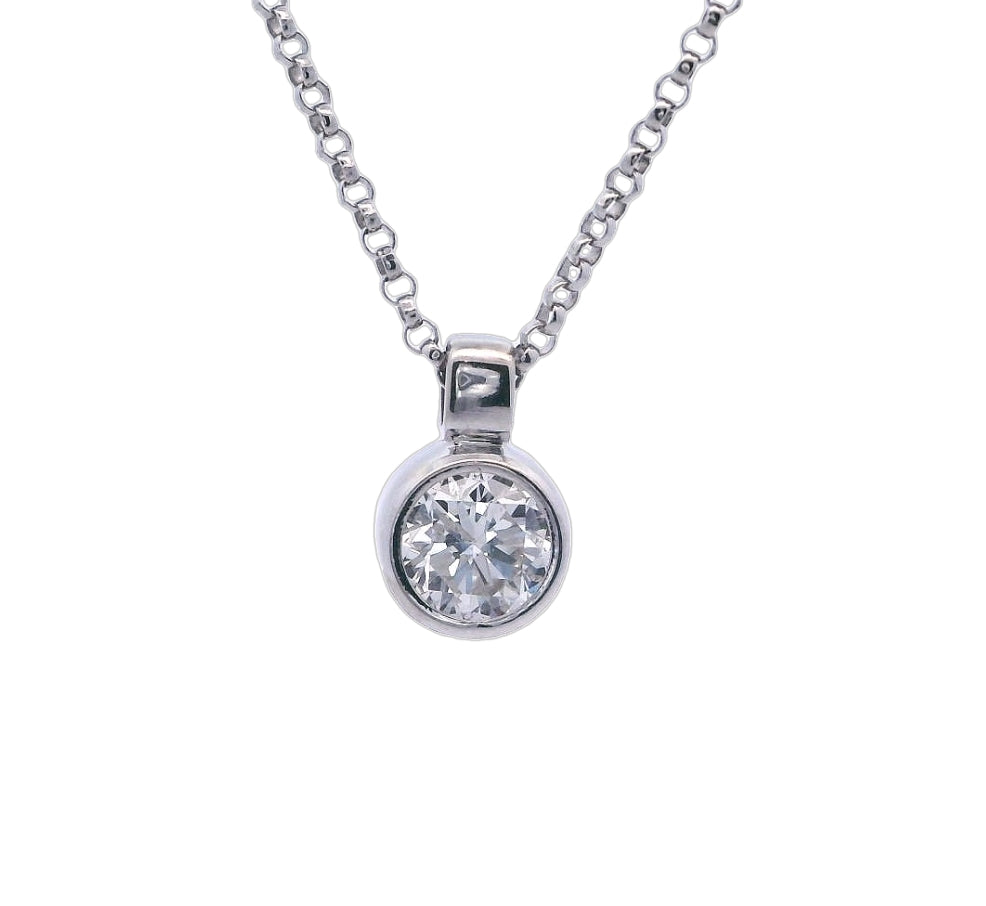 14KW 0.48ct Diamond Bezel Pendant on 16" Rolo Chain