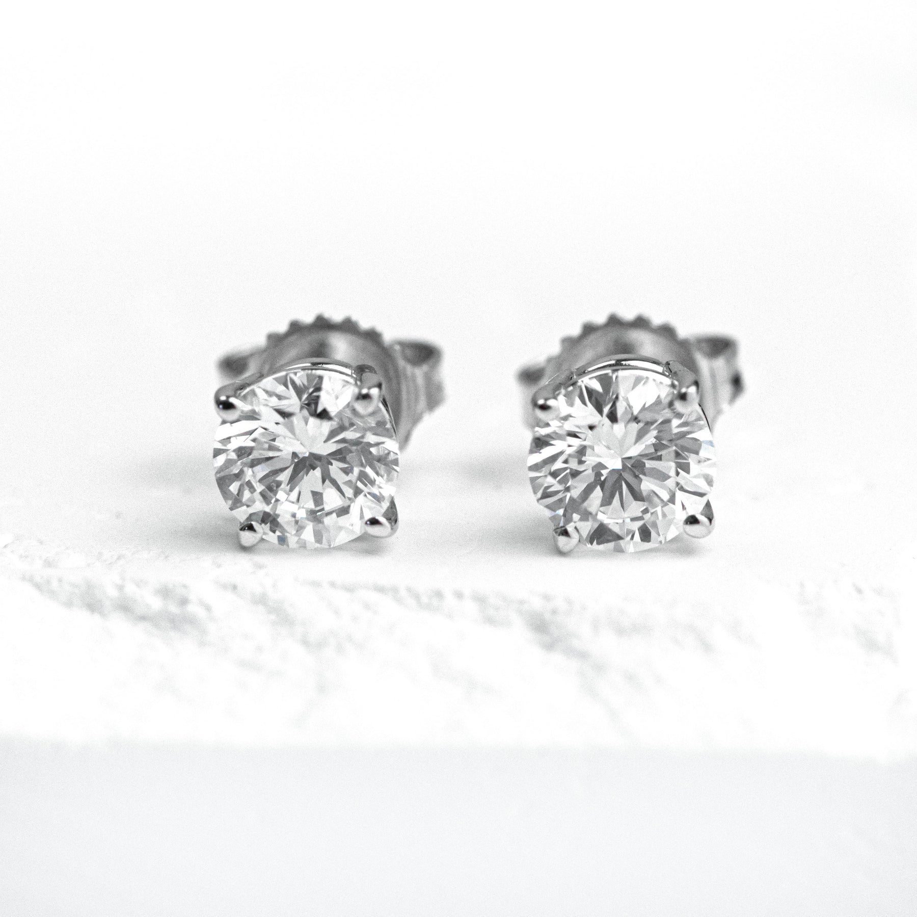 14KW 2.02ct 4- Prong LAB Diamond Stud Earrings