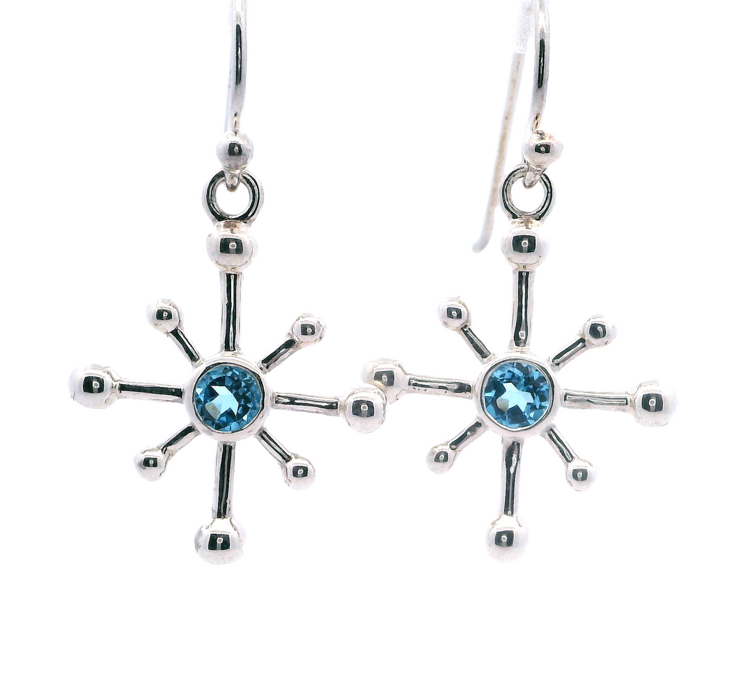 Earrings (Satellite Drop With Blue Topaz) .925 Sterling Silver