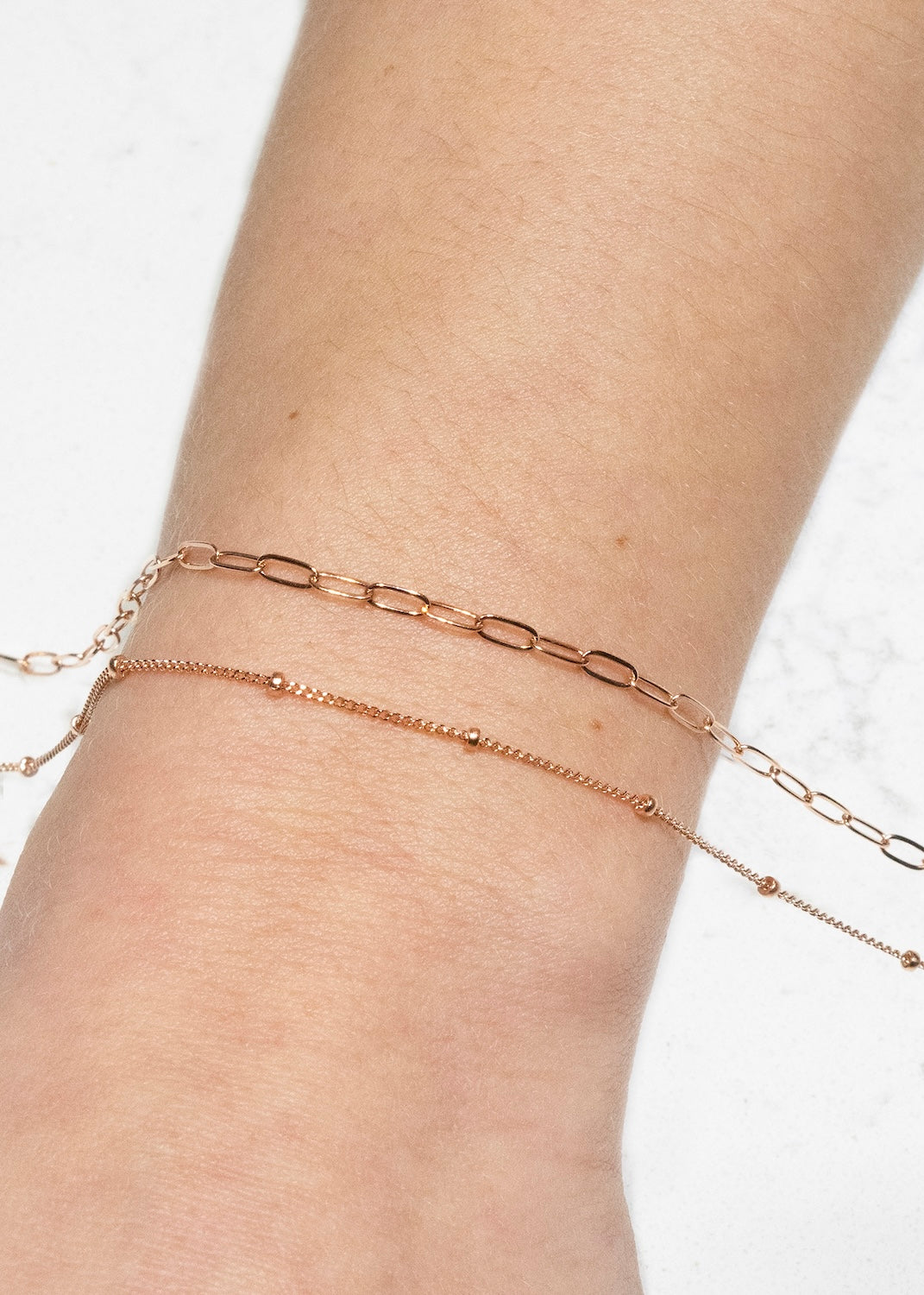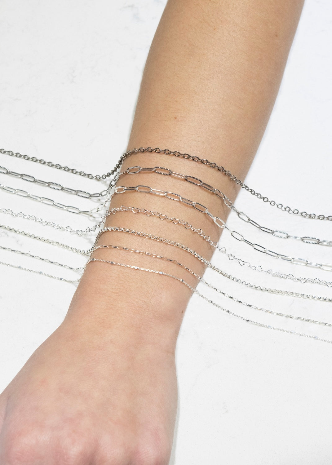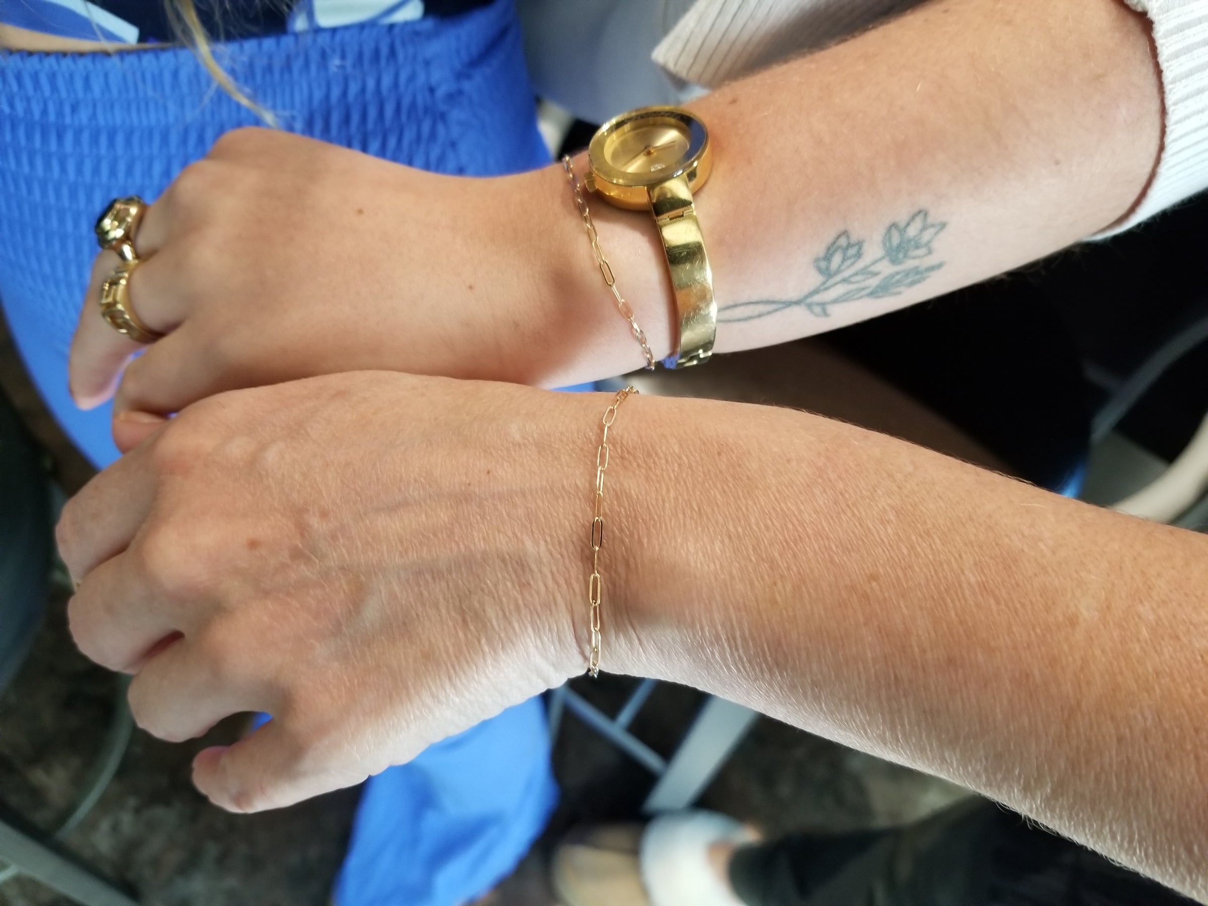 We will measure the chain to fit your wrist or ankle, then weld the two ends together with a quick zap. These pieces are not removable via a typical clasp, hence the name - permanent jewelry!