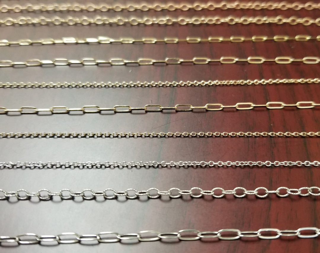 Choose your favorite from our wide array of chain options. We have something for everyone, including sterling silver as well as 14k white, yellow, and rose gold!