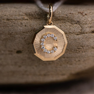 This 14K yellow gold pendant features a diamond “C” centered on a softly brushed octagon, finished with clean polished edges. The tone is warm and the design is deliberate. It's a meaningful letter made to wear close, whether it's your own or someone special's.