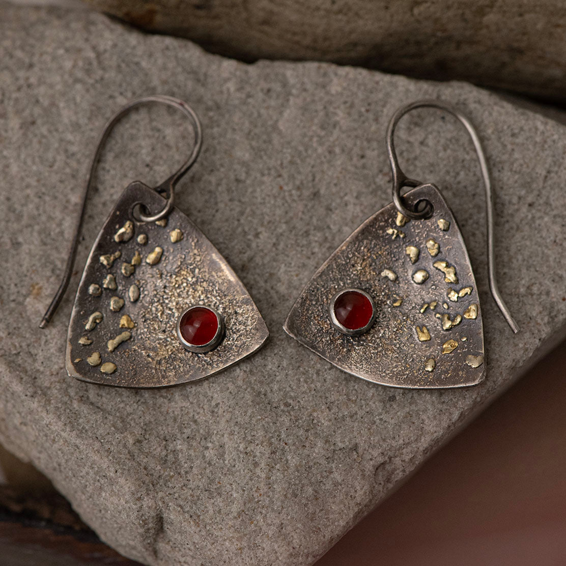 AS/18KY & Placer Gold Ear w/ Rnd Carnelians
