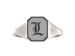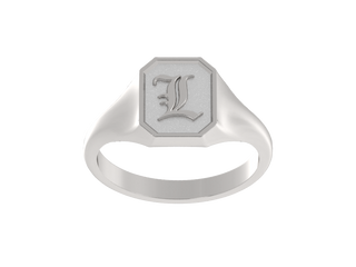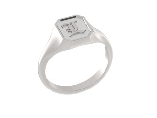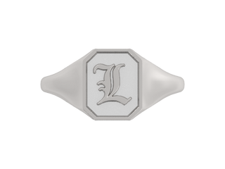This message only appears in theme editor.The Classic Men's Signet Ring is a heavyweight, personalized men's ring designed to last a lifetime. Crafted from solid 14K white gold, this bold octagonal-faced signet features a sharply defined serif letter, deep-cast directly into the ring for enduring impact and heirloom quality. Inspired by traditional men's signet ring craftsmanship, every piece is made to order in your size, cast and finished entirely in-house at our Pittsburgh jewelry workshop using responsibly sourced, solid precious metals.