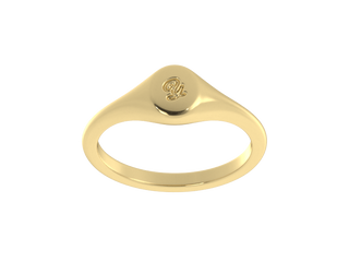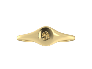 This message only appears in theme editor.The Minimalist Ladies’ Signet Ring is a personalized women’s ring designed for lasting wear and heirloom quality. Crafted from solid 14K yellow gold, this heavyweight signet captures the dainty, minimalist look while offering the substance and comfort of a true heirloom piece. Your custom script initial is cast directly into the gold, creating a rich, dimensional finish that brings delicate detail to its timeless silhouette. Its sleek oval face with smooth edges is made for everyday elegance.