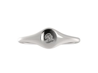 This message only appears in theme editor.The Minimalist Ladies’ Signet Ring is a personalized women’s ring designed for lasting wear and heirloom quality. Crafted from solid .925 sterling silver, this heavyweight signet captures the dainty, minimalist look while offering the substance and comfort of a true heirloom piece. Your custom script initial is cast directly into the metal, creating a rich, dimensional finish that brings delicate detail to its timeless silhouette. Its sleek oval face with smooth edges is made for everyday elegance.